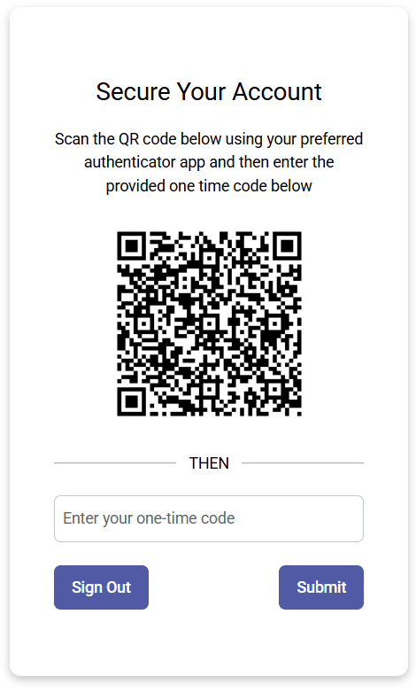 - Scan the QR code with an Authenticator app.