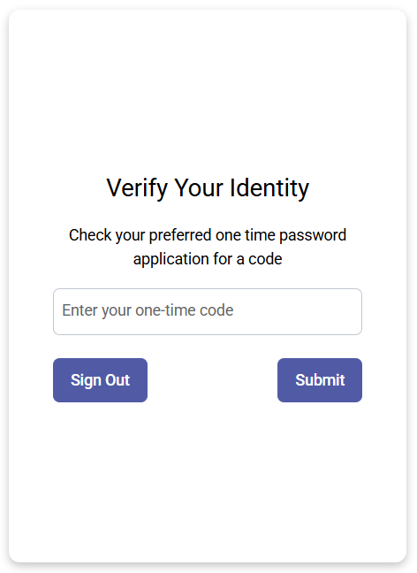 - Enter the code generated by your Authentication app and select Submit.